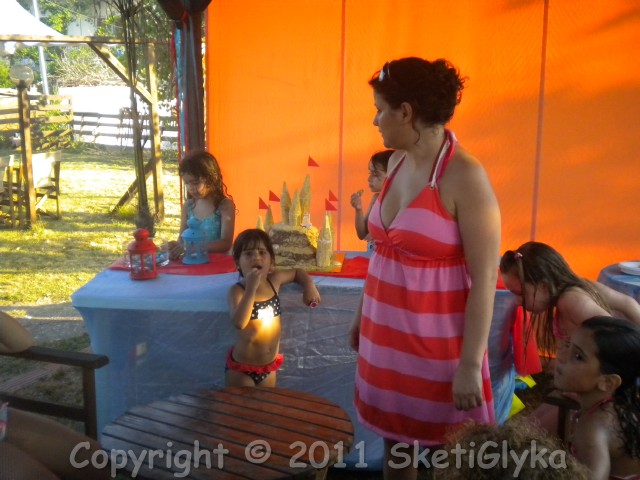 Ετοιμάσαμε μια Τούρτα κάστρο στην Άμμο, μιας και το πάρτι μας θα γινόταν σε ενα super beach bar, με νεροπίστολα, νεροτσουλιθρες και ζουζουνομουσική...